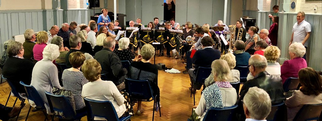 The band were delighted to play although with a little trepidation at first as the ‘Concert Theatre’ in her Village Hall was rather on the small side. Having thought about this issue carefully, I advised the audience to turn their hearing aids down whilst the band were playing and back up again whilst I was talking – problem solved. The occasion proved to be a super opportunity to run some of our 2018 tour programme in public and the band rose to the challenge with some excellent playing that was, if the comments afterwards are to be believed, thoroughly appreciated by all those there.